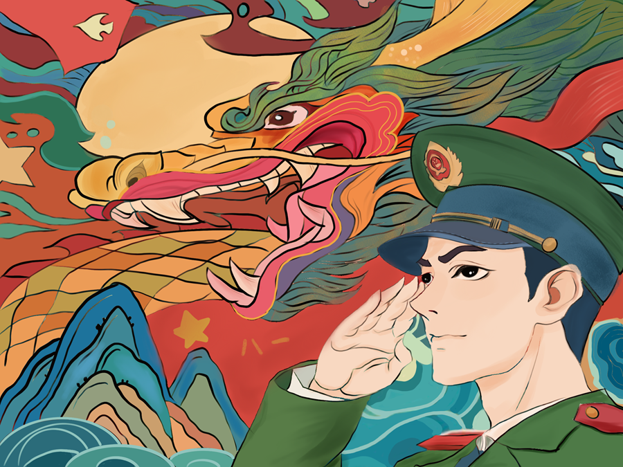 丁双龙刻纸:人民军队 威武之师