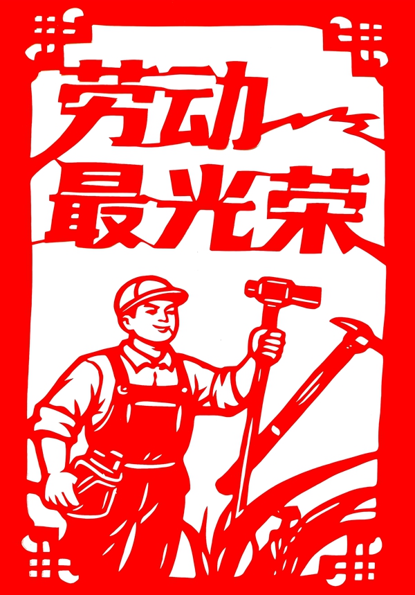 职工刻纸/剪纸:欢庆“五一”